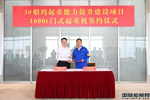 10月16日,江南造船与振华重工举行3#船坞起重能力提升建设项目1600吨门式起重机合同签订仪式